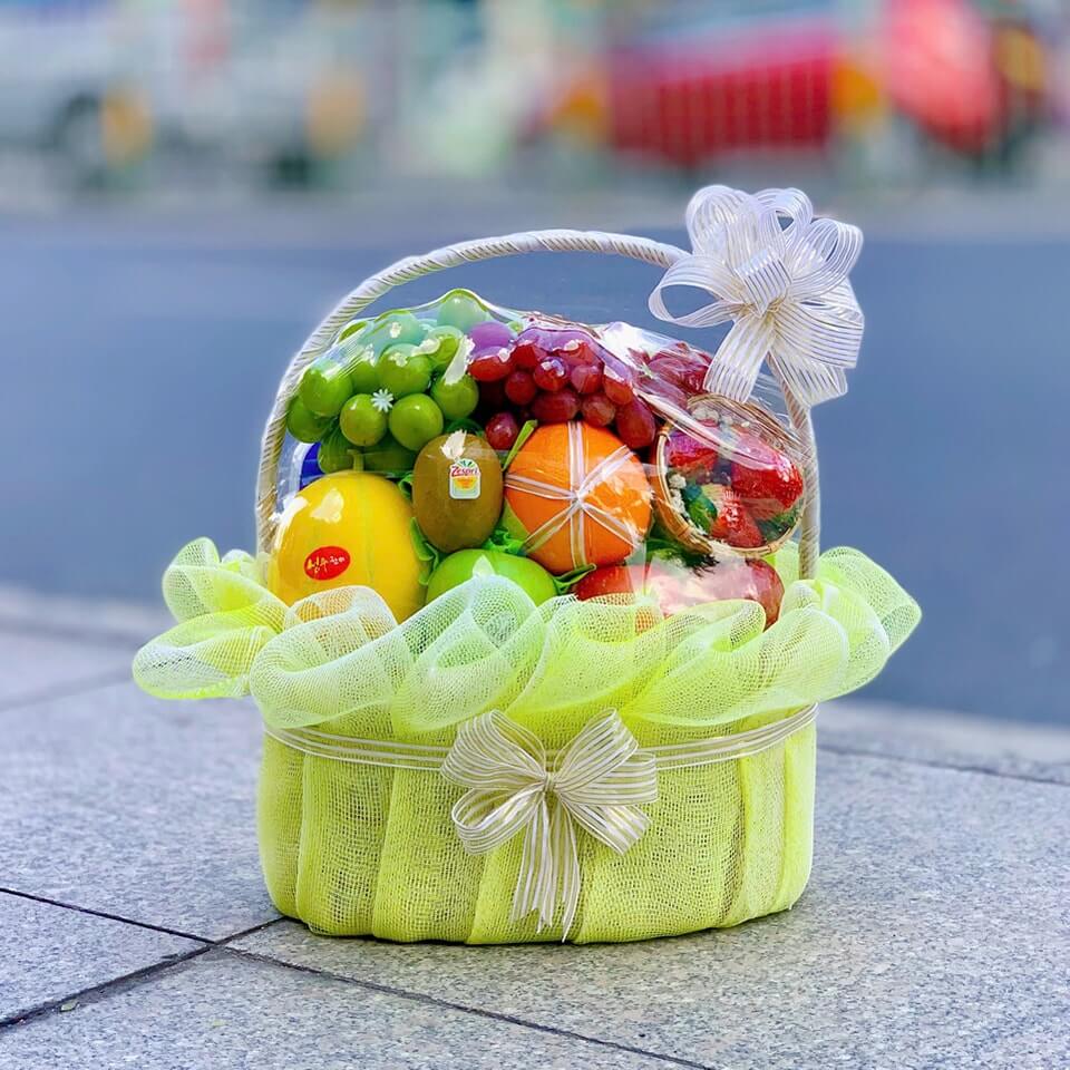 Đây là lựa chọn được yêu thích hàng đầu trong dịp 20/10. Giỏ trái cây cao cấp thường gồm táo, nho, cam, lê Hàn Quốc, kiwi, hoặc cherry – tất cả đều được nhập khẩu chính ngạch, đảm bảo tươi ngon và an toàn.